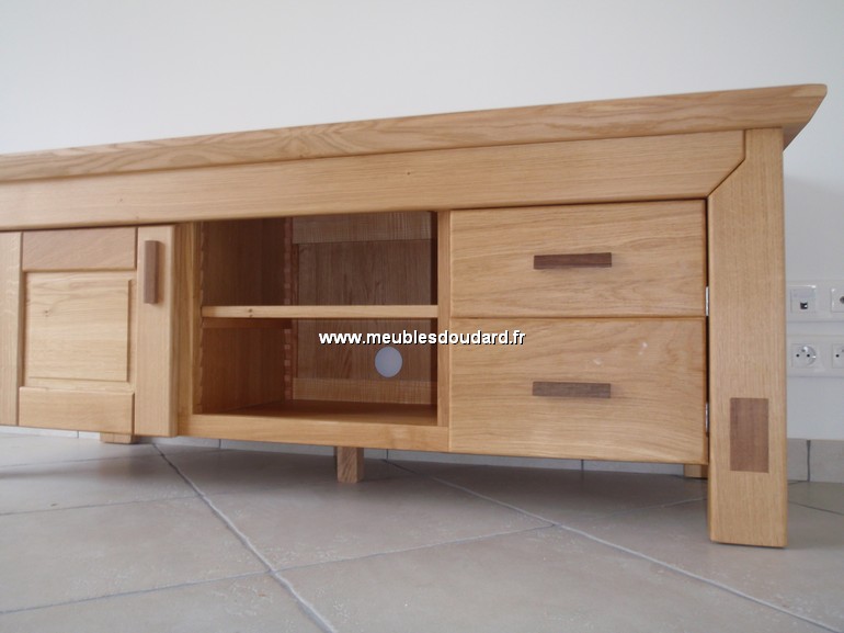 Meuble de télévision 2 portes réf SOPRANO en chêne massif et noyer massif, Fonds , dos, tablettes en frêne 100% massif réglables sur...
