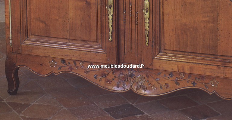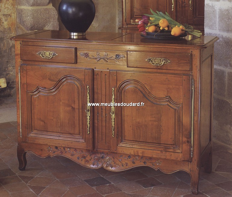 Buffet 2 corps chapeau de gendarme en merisier massif, fonds et étagères en châtaignier  massif. Dimensions: L 142 x H 227 x P 55 cm. le modèle nous a été inspiré par un sympathique chasseur de la...