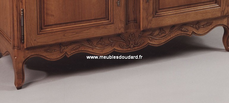 Buffet 2 corps, 3 tiroirs Normand réf DES JAC en chêne 100% massif, sculpté à la main. Pieds de biche