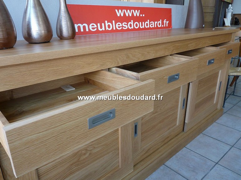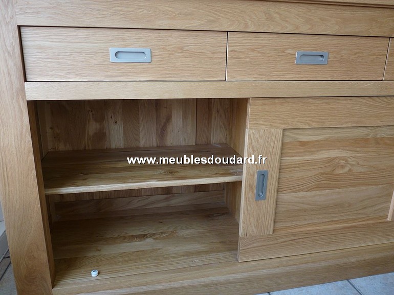 Bibliothèque 2 portes coulissantes, 3 tiroirs contemporaine réf CRISTAL en chêne massif. Dimensions L 201x H 219 x P 53cm. fabrication en chêne 100% massif : Fabrication traditionnelle,...