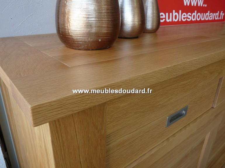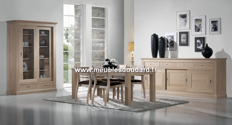 Vitrine 2 portes coulissantes, 2 tiroirs contemporaine réf CRISTAL 601002 en chêne massif. dim:L 151x H 206 x P 51cm fabrication artisanale en chêne 100% massif ; Fabrication traditionnelle,...
