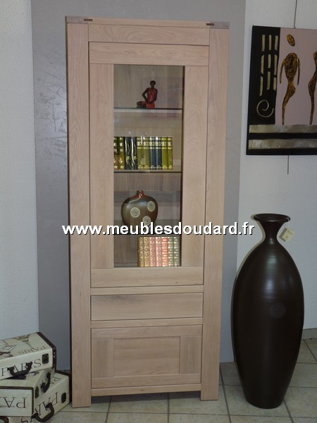 Très belle vitrine 2 portes, 1 tiroir contemporaine réf DIA 541602 en chêne massif. Ouvertures des portes à poussoir. dimensions:L 80 x H 200 x P 45 cm fabrication artisanale en chêne 100%...