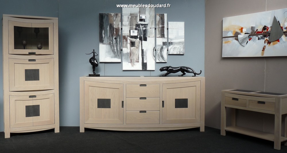 Salle à manger réf ZEN en chêne massif et céramique massive.Fabrication haut de gamme, assemblages tenons et mortaises, insert céramique dans les portes et plateau de la table.Bahut 2 portes, 3...