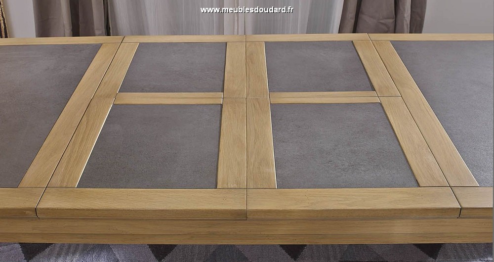 table rectangle moderne, table contemporaine chêne clair, table plateau céramique et chêne clair