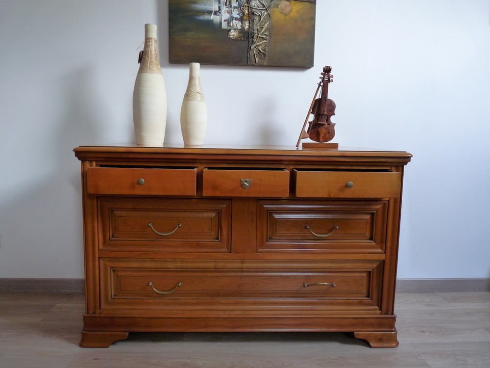 Commode 6 tiroirs Louis Philippe en merisier massif