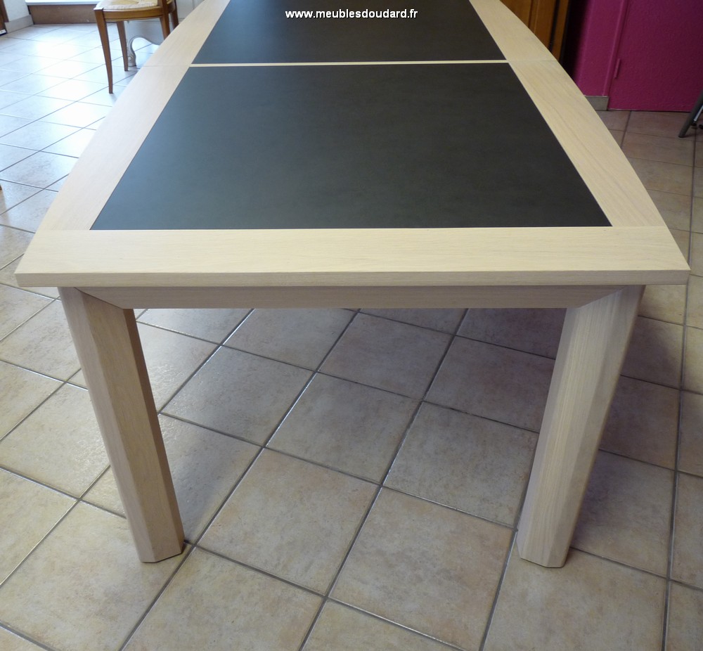 Table contemporaine en chêne massif avec 2 allonges de 65 cm
