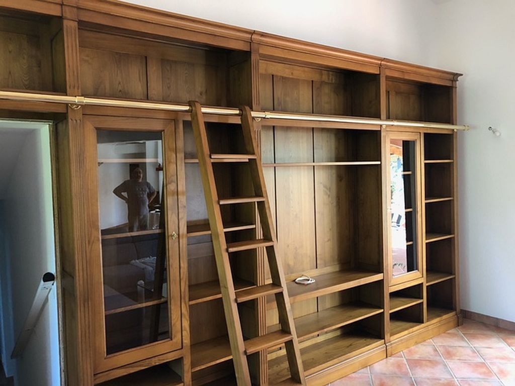 Grande bibliothèque directoire sur mesure avec échelle