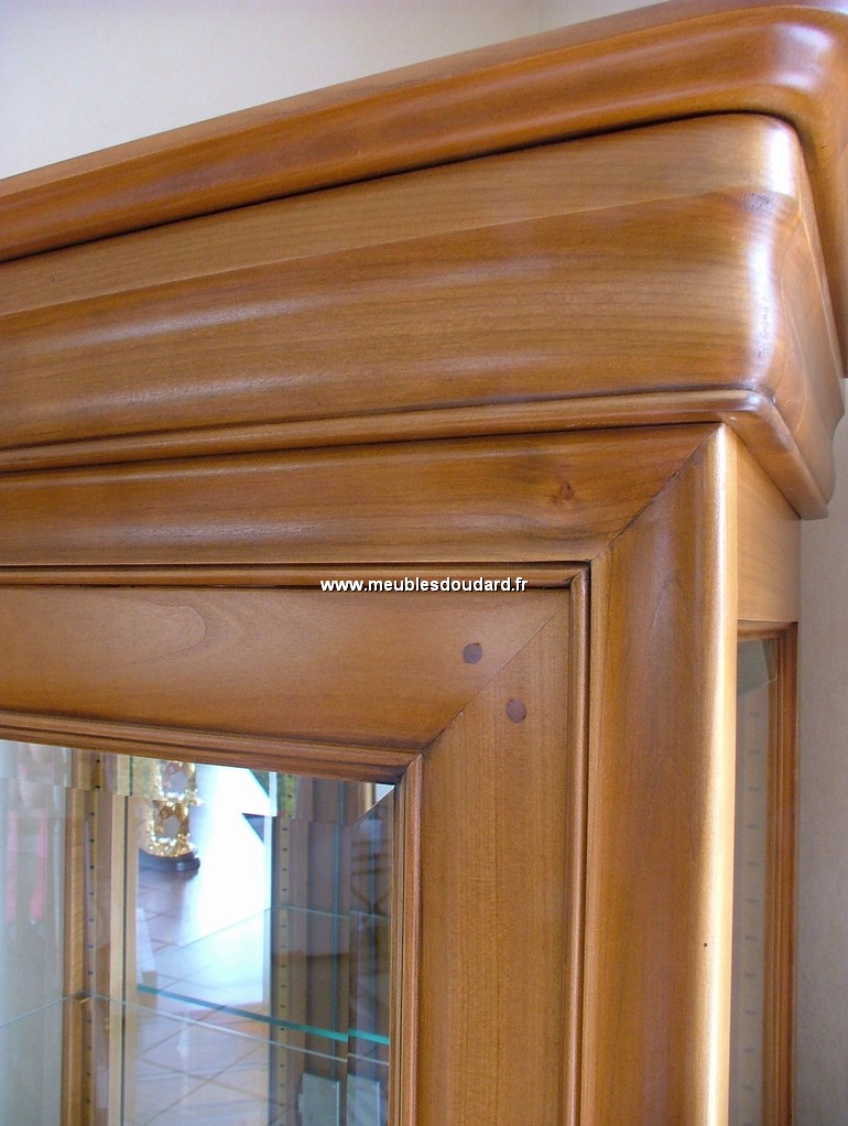 Argentier LOUIS PHILIPPE 2 portes ref DES  en merisier massif de France, dos, fond en châtaignier massif. Dimensions: L 130 x H 200 x P 50 cm.3 tablettes en verre, dos avec miroir...